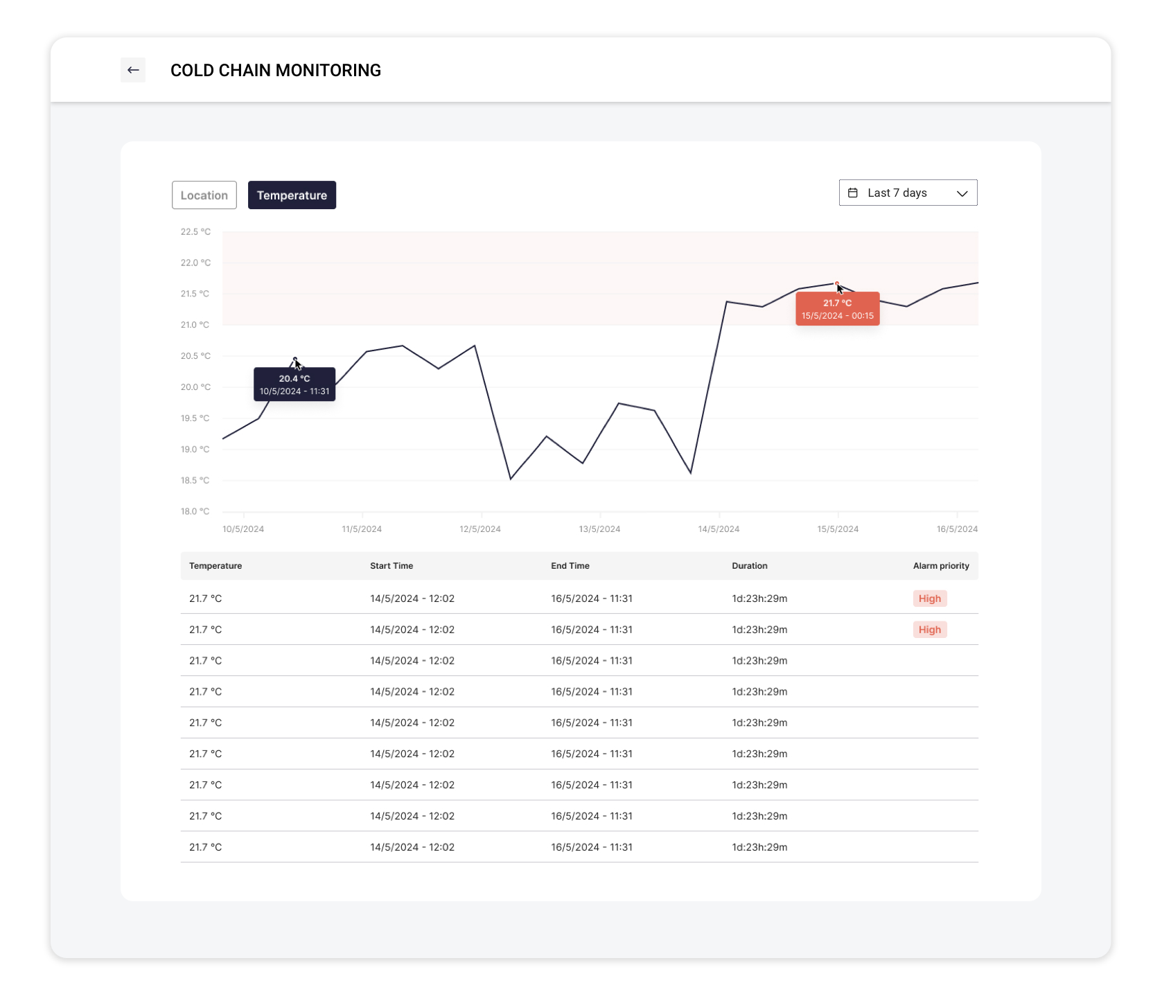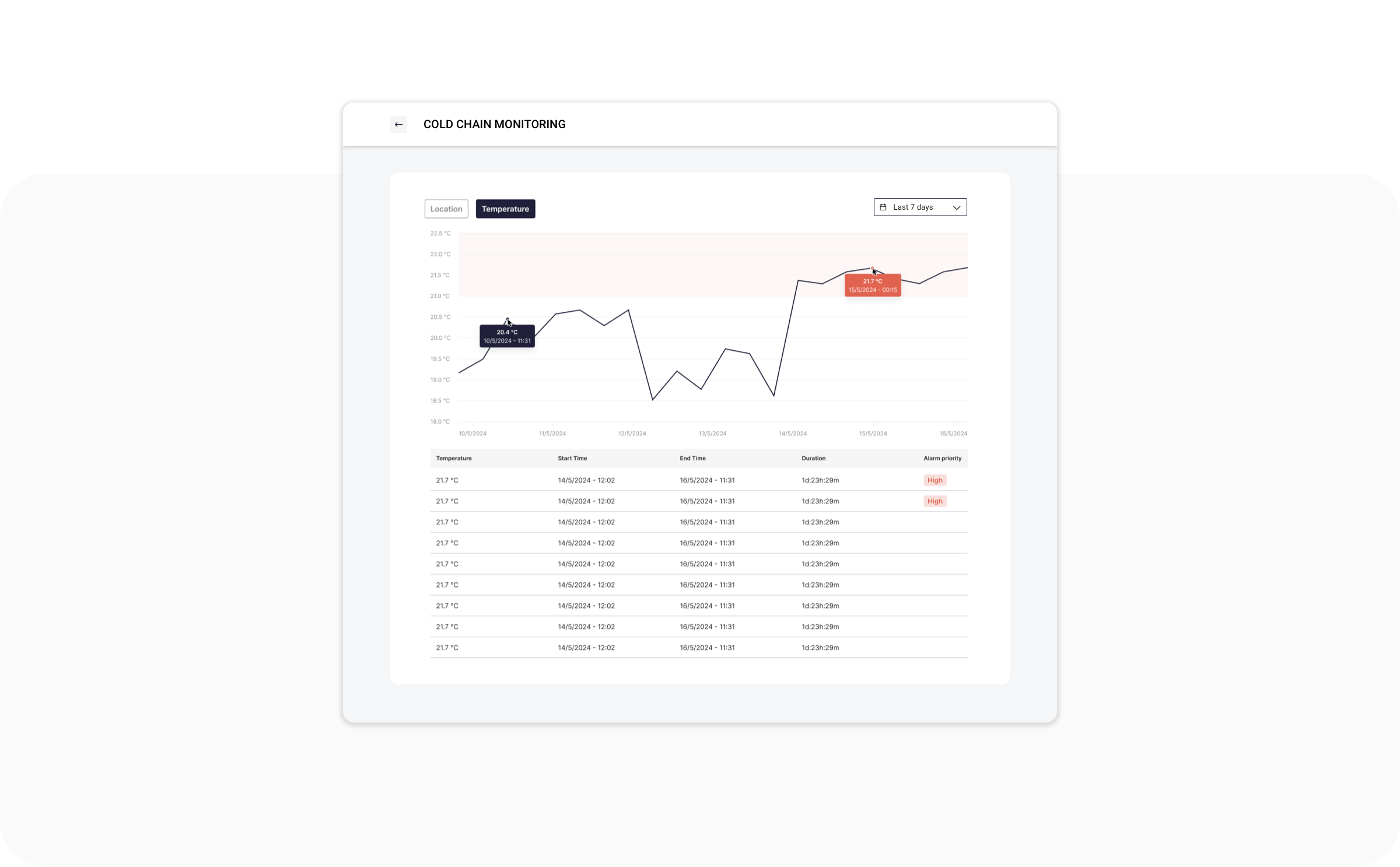 Real-time alerts for any temperature deviation